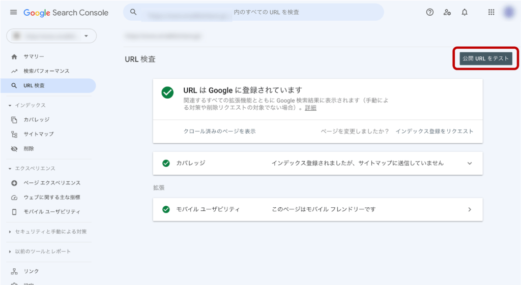 次に「公開URLのテスト」ボタンを押し、追加したいページの有効性を確認します。